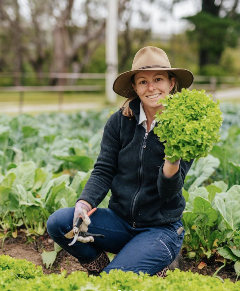 The block she found was small but perfect: north-facing, protected from floods, with a native gully below that carries the sound of frogs at night. Here, she built Mountains Gourmet; a one-woman market garden feeding families, local cafés, and even the kitchens of tech giant Canva in Sydney.